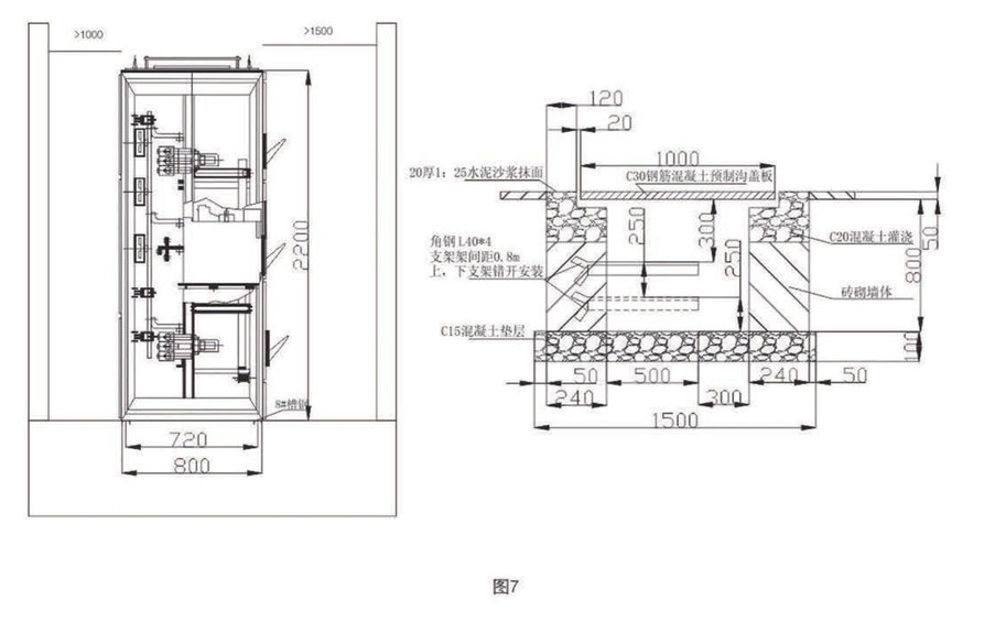 5、應防止雨淋受潮,環(huán)境溫度按本樣本的有關規(guī)定。產(chǎn)品的成套性開關柜附有裝箱單,產(chǎn)品合格證,產(chǎn)品使用說明書及必要的圖紙,隨機附件有]鑰匙以及根據(jù)配套清單所提供的備品備件等。柜體尺寸圖和安裝示意圖(圖7 )