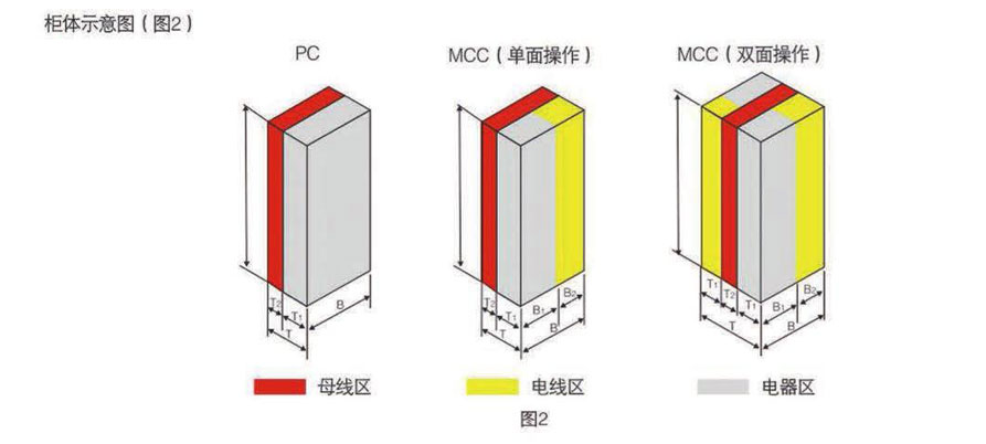 5、裝置的深度有600mm ( MCC單面操作柜)和1000mm (PC和MCC雙面操作柜)二種,推薦PC和MCC分開排列使用。當使用分斷式功能板時,可允許PC和MCC混合裝配在同一臺柜中。